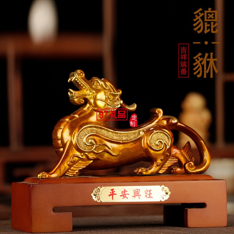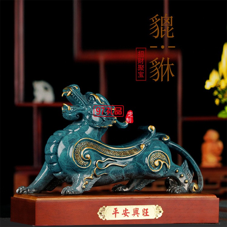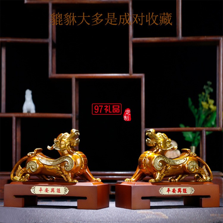黃銅貔貅招財(cái)擺件中式家居辦公室大號(hào)純銅金屬貔貅工藝品擺件