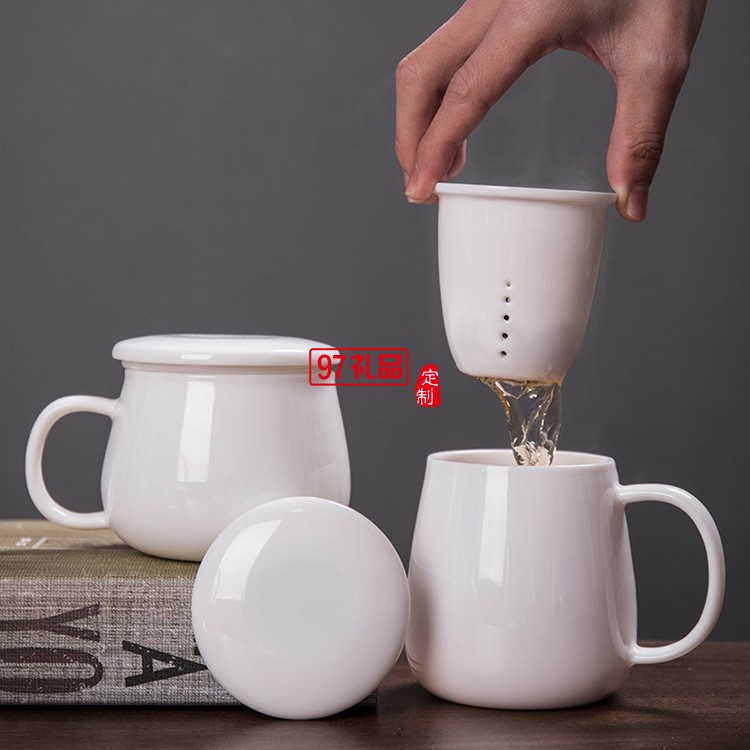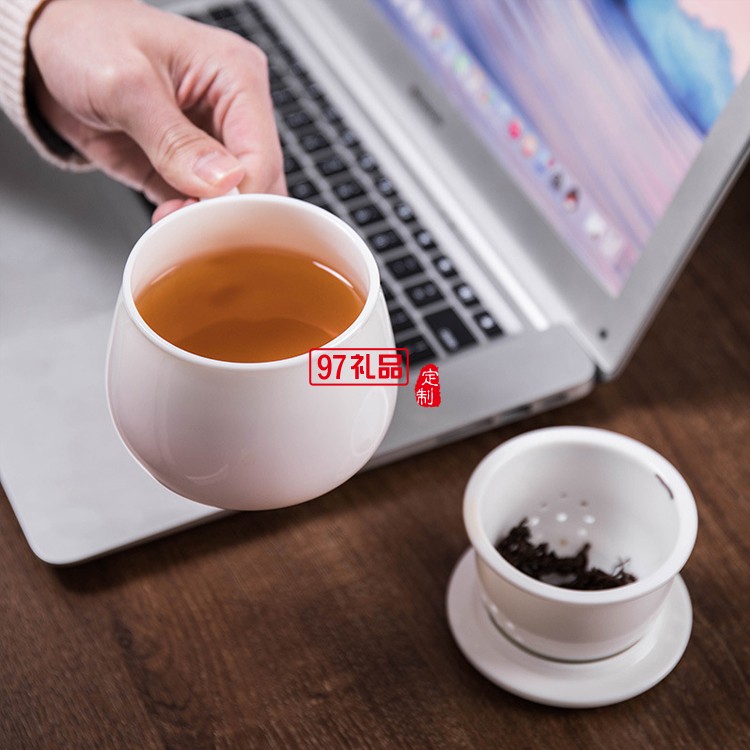 白瓷茶具茶杯羊脂玉過濾帶蓋辦公杯酒店用禮品logo伴手禮