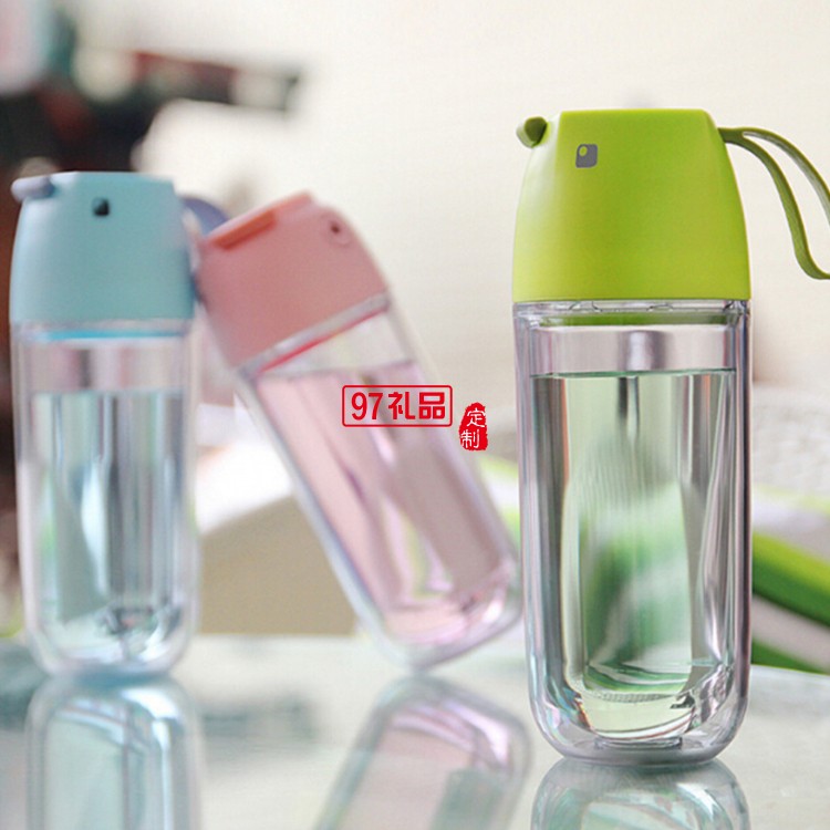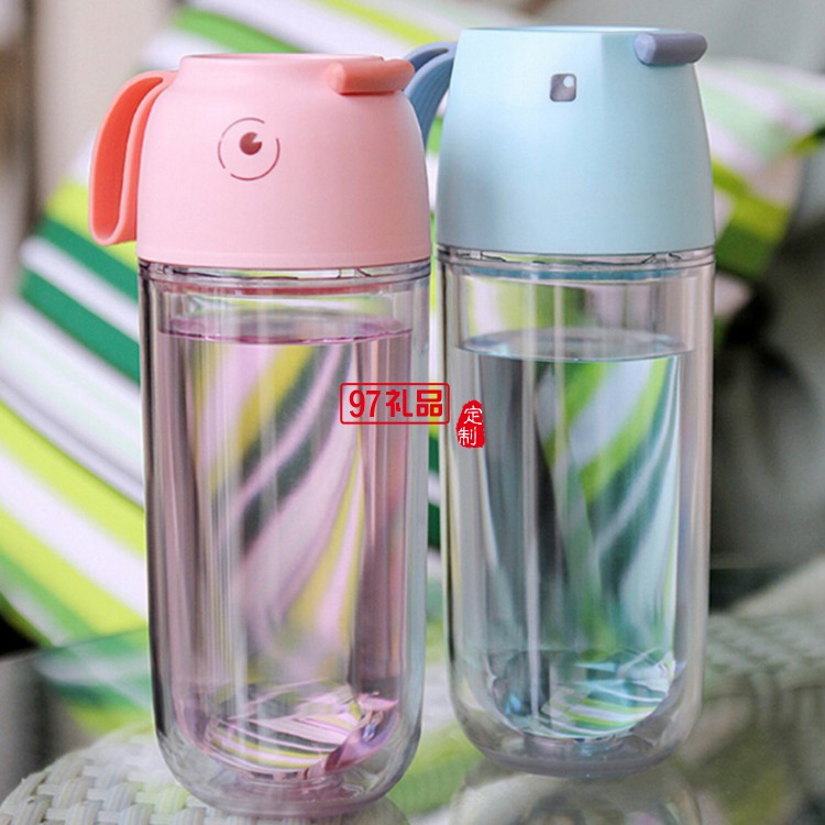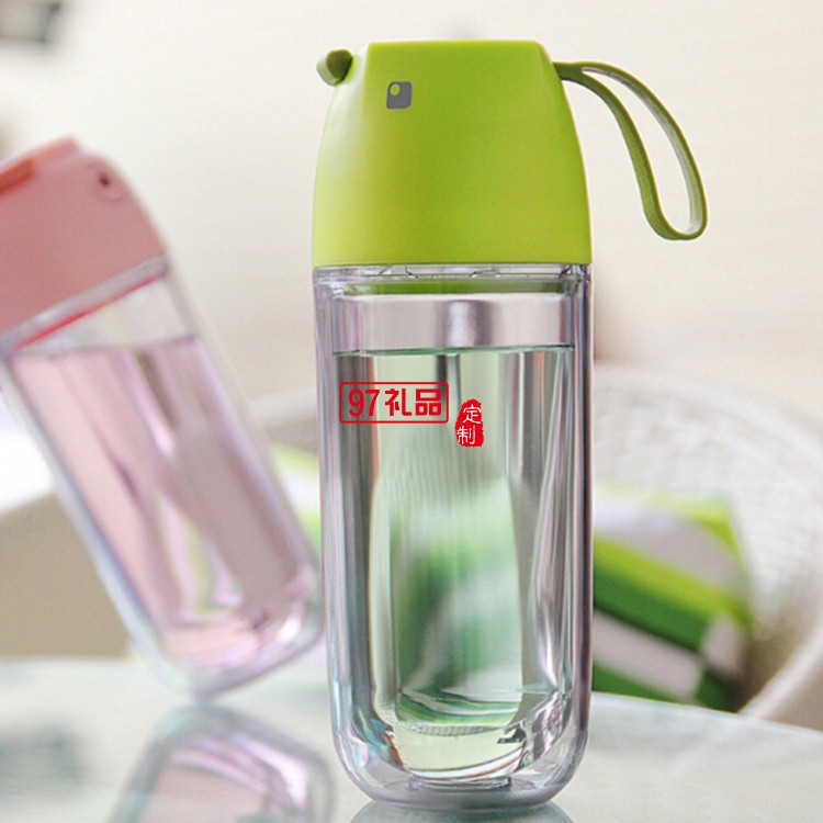 雙層塑料杯子 創(chuàng)意便攜運(yùn)動(dòng)水杯 學(xué)生隨手杯