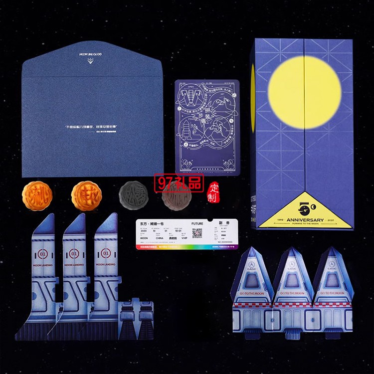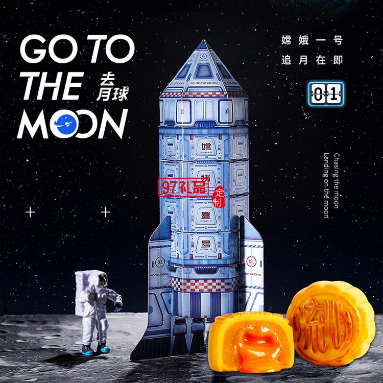嫦娥一號(hào)中秋節(jié)月餅禮盒裝流心奶黃月餅高檔伴手禮品送禮團(tuán)購定制