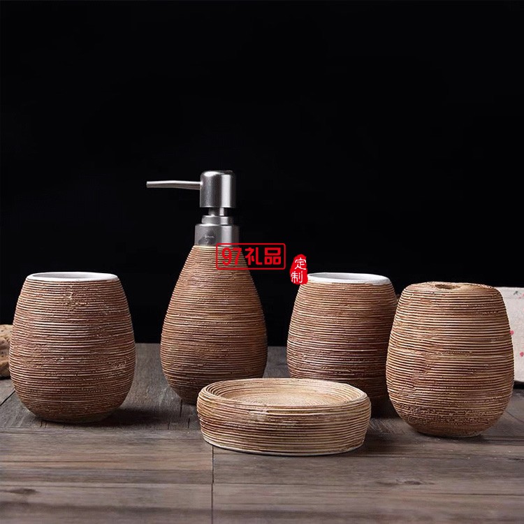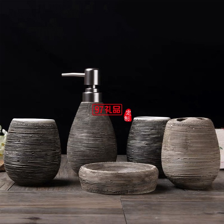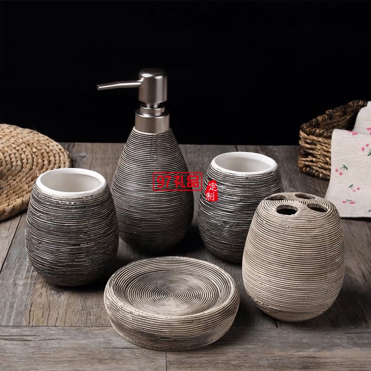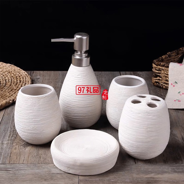 浴室陶瓷拉絲衛(wèi)浴5件套 典雅別致家用酒店漱口杯肥皂碟衛(wèi)浴套件