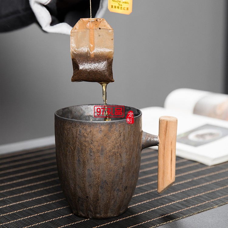 咖啡杯復(fù)古陶瓷茶杯創(chuàng)意木柄泡茶水杯個(gè)性家用奶茶杯