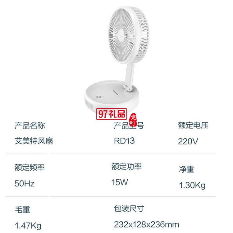 艾美特電風(fēng)扇小風(fēng)扇臺式空氣循環(huán)扇CM-RD13定制公司廣告禮品
