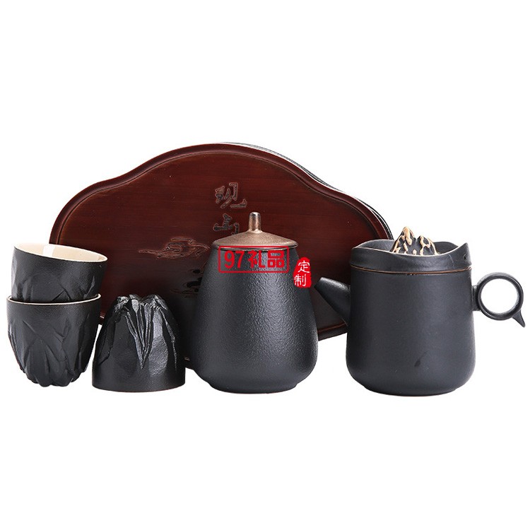 德化陶瓷創(chuàng)意觀山茶具套裝粗陶便攜旅行茶具配茶盤商務(wù)禮品