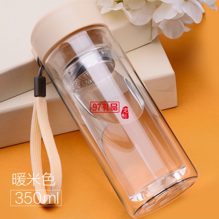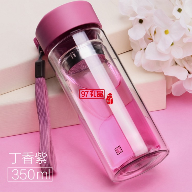 雙層玻璃杯 創(chuàng)意便攜茶杯 車載隔熱水杯