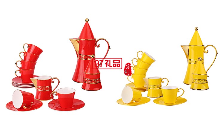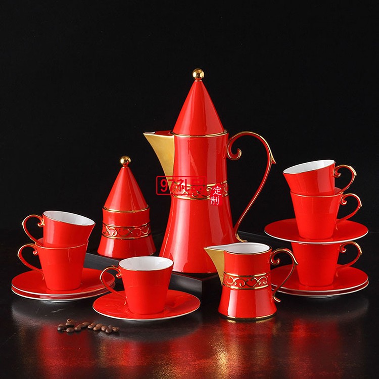 配套方式:咖啡壺1個、奶壺1個、糖罐1個、咖啡杯子6個、咖啡碟子6個