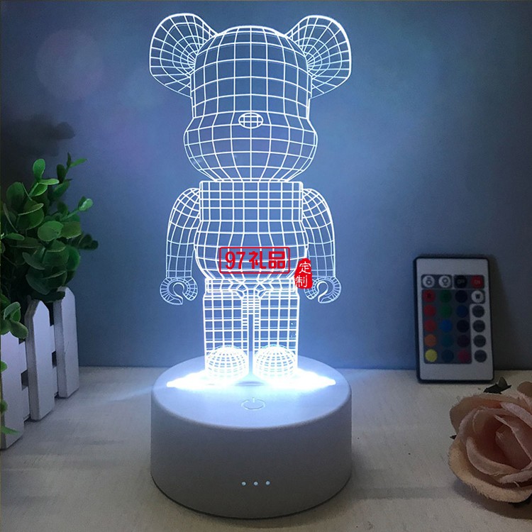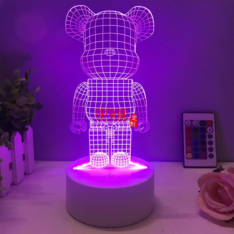 暴力熊小夜燈潮牌積木充電七彩3D臺(tái)燈酒吧臥室床頭定制公司廣告禮品