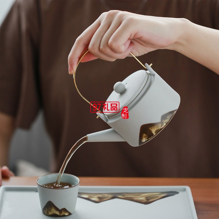 日式提梁壺功夫茶具 辦公簡約家用手繪禪意陶瓷茶壺禮盒套裝
