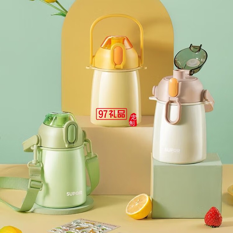 蘇泊爾保溫杯兒童水杯316不銹鋼大肚杯吸管杯子定制公司廣告禮品