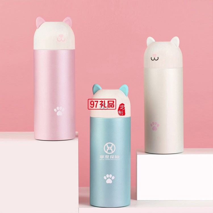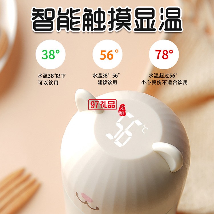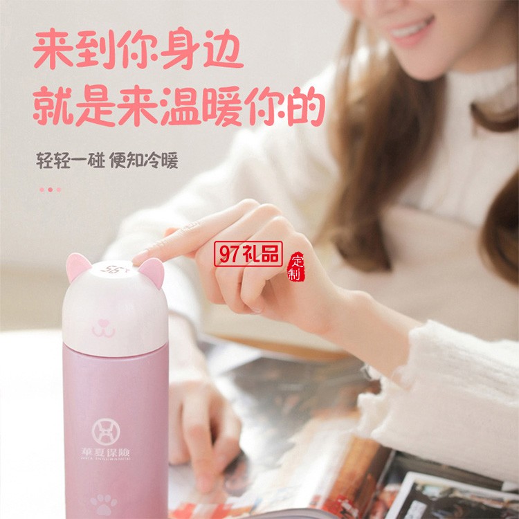 華夏銀行定制時尚喵喵保溫杯測溫數(shù)顯304不銹鋼保溫杯禮品杯子定制