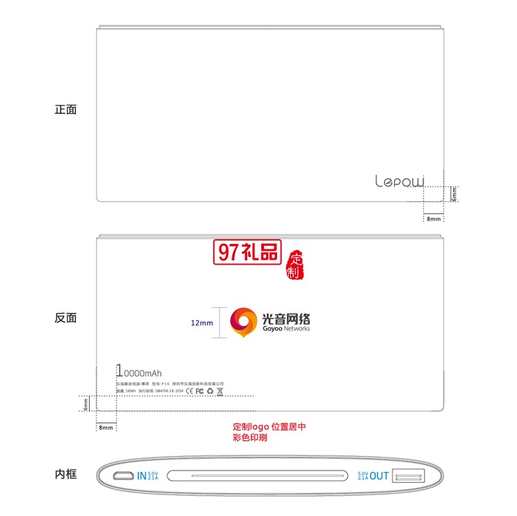 圓潤曲線、手感體貼;人機互動、觸碰滑動電量顯示;高端電芯配備、首款可帶上飛機的移動電源