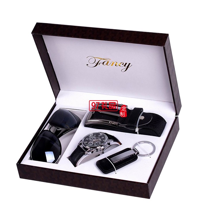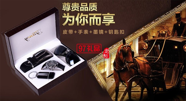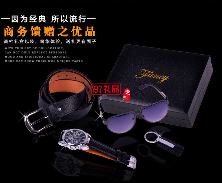 高檔手表時尚墨鏡皮帶鑰匙扣4件套套裝