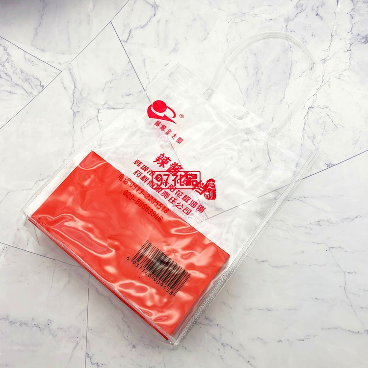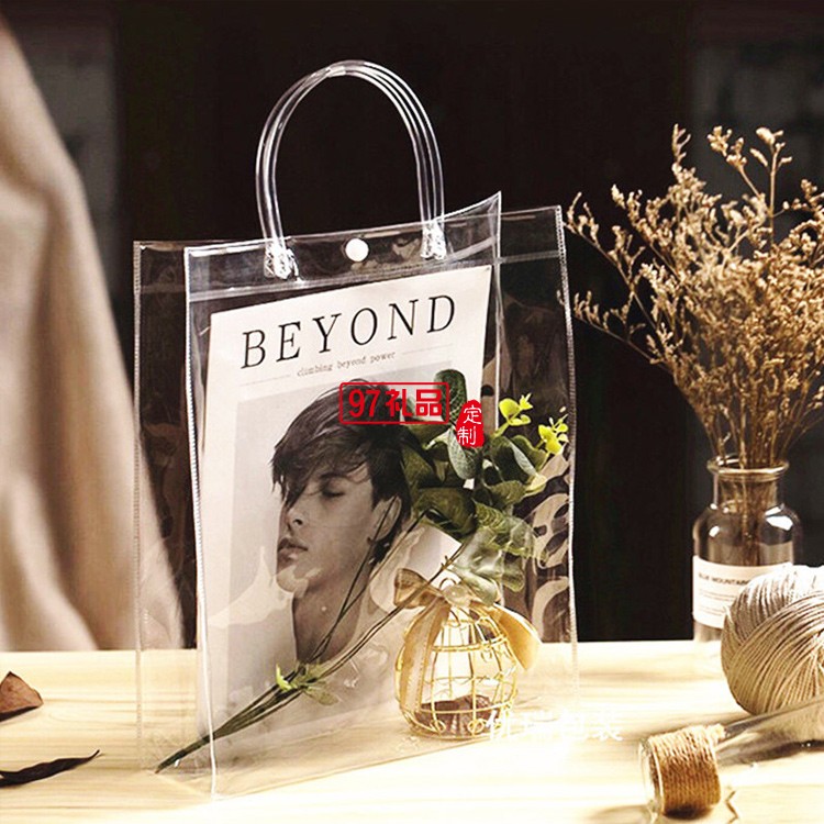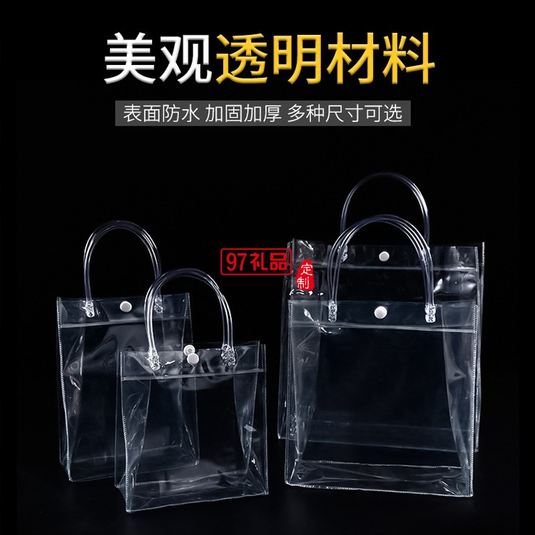 產品名稱: 透明PVC手提塑料廣告活動購物禮品袋 加厚防水按扣包裝袋手拎袋子