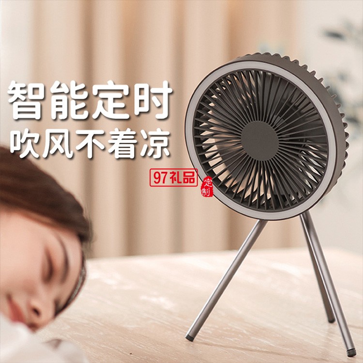 usb充電多功能迷你臺扇帶燈吊扇定時電風扇三腳架