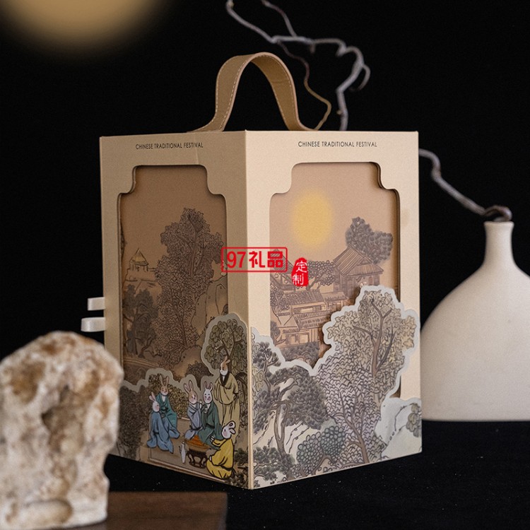新款高檔中秋月餅禮盒裝新中式團(tuán)購定制Logo送禮月餅禮盒