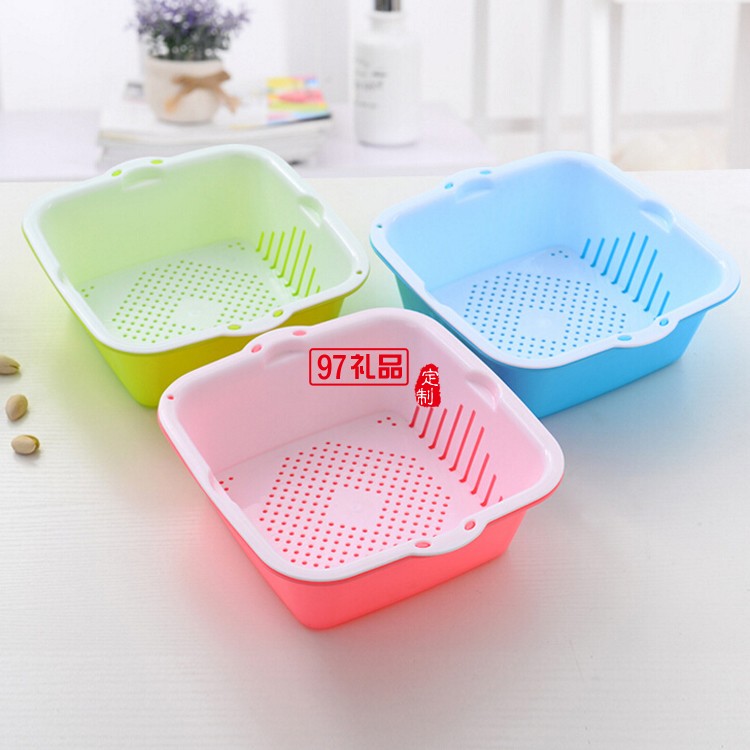 產(chǎn)品尺寸:25*23*8.5 產(chǎn)品顏色:綠色 粉紅色 藍(lán)色 產(chǎn)品用途: 廚房收納 多功能雙層瀝水篩,共有兩層,有滴水功能, 滴水隔層布滿小孔,可分開使用, 用于清洗蔬菜、水果或是存放餐具、食物和水果等。 也可用于洗菜或焯水后瀝干水分,剛洗完的碗放上面也可以瀝水。 下面的盆可以當(dāng)普通的盆用,一舉多得哦~