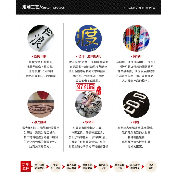 適用范圍:廣告促銷 商務(wù)活動、廣告派發(fā)、慶典開業(yè)、回饋客戶 定制流程:選中商品提出定制需求,免費(fèi)策劃設(shè)計,確認(rèn)樣品下單, 簽署合同支付定金,支付余額收貨,售后啟動,免費(fèi)熱線:400-0197-908