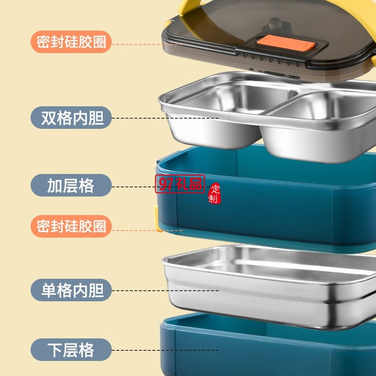 304不銹鋼飯盒食品級(jí)學(xué)生上班族分格保溫便當(dāng)盒定制公司廣告禮品