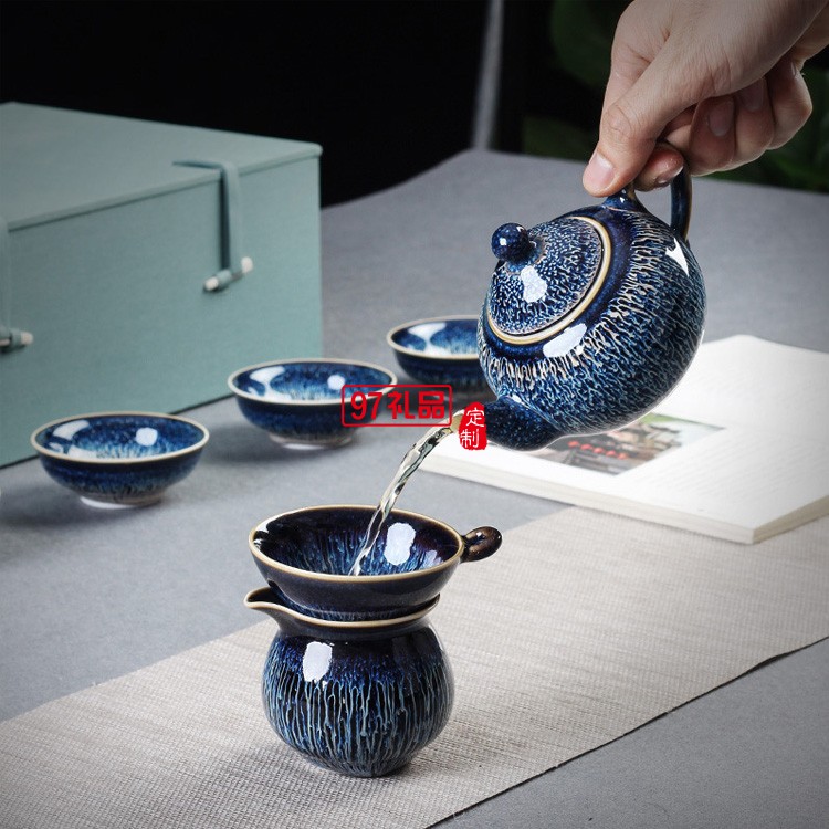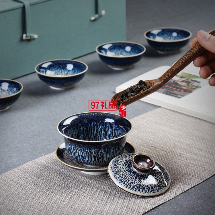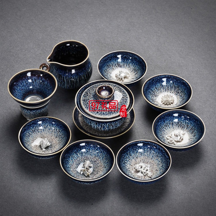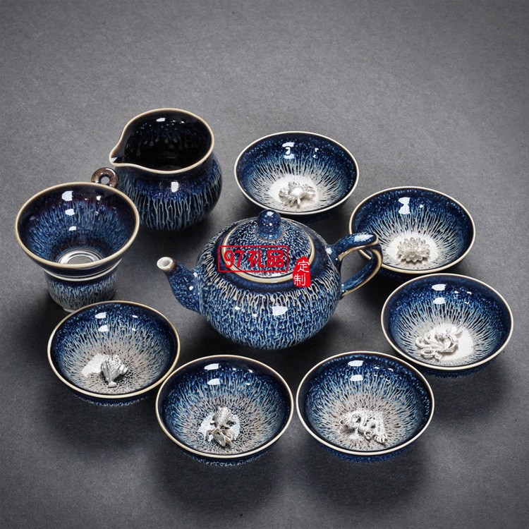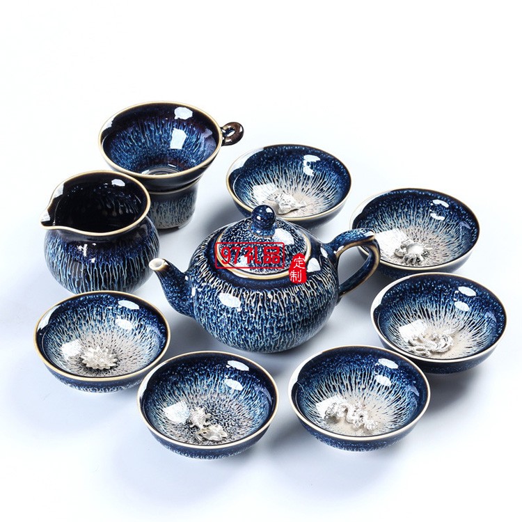 景德鎮(zhèn)鑲銀茶具辦公陶瓷家用套裝整套功夫茶具茶壺高檔商務禮品定制