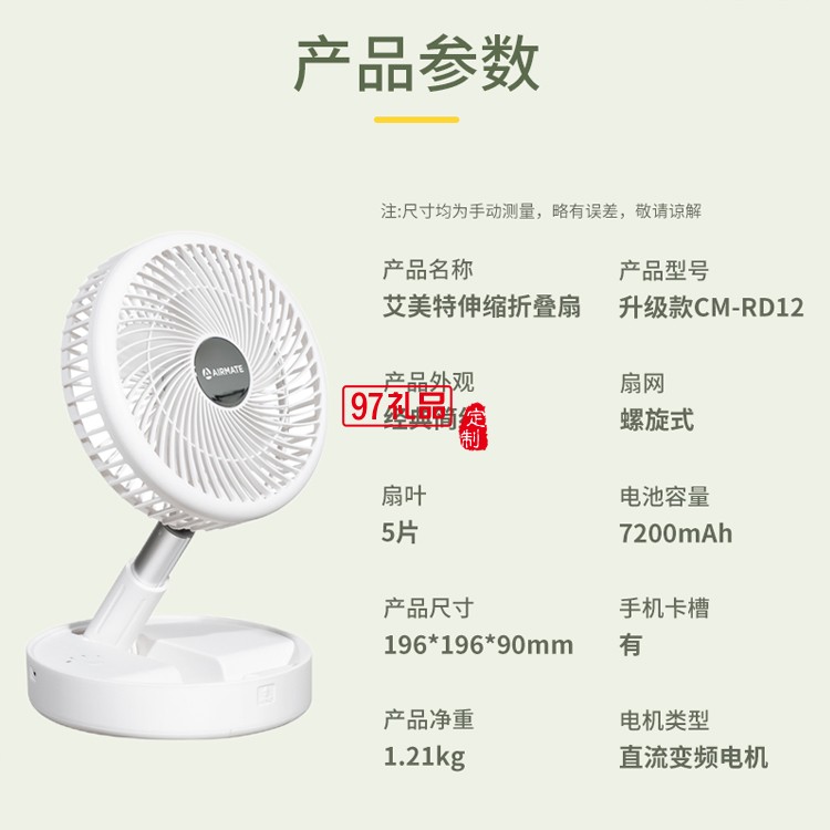 艾美特電風(fēng)扇折疊無線風(fēng)扇usb小風(fēng)扇CM-RD12定制公司廣告禮品