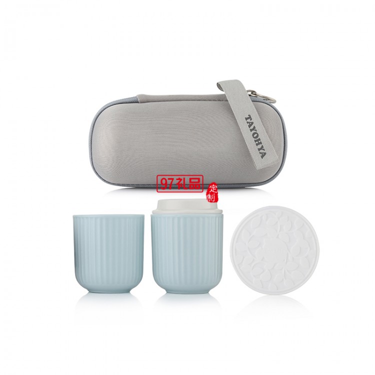 多樣屋 藍(lán)顏 旅行茶杯套組彩晶瓷+強(qiáng)化瓷+EVA+硅膠便攜茶組