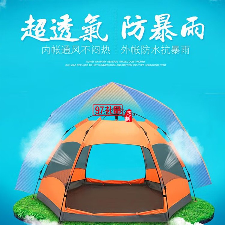 六角全自動戶外大帳篷雙人防雨露營帳篷MKZ-004定制公司廣告禮品
