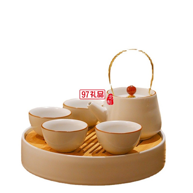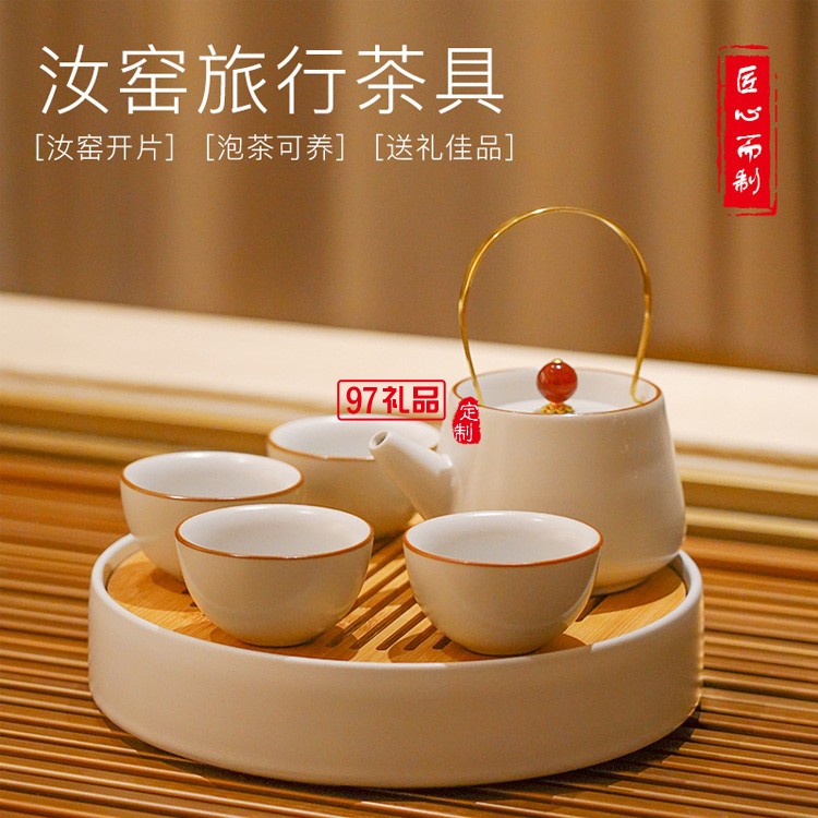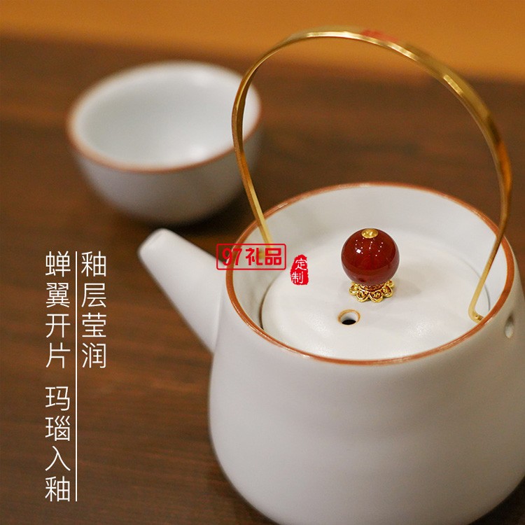 汝窯功夫茶具套裝家用提梁茶壺茶杯開(kāi)片仿古汝瓷干泡盤(pán)