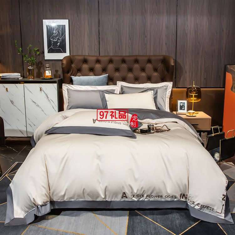 雅鹿 典雅風(fēng)140支全棉輕奢刺繡套件床上四件套定制公司廣告禮品