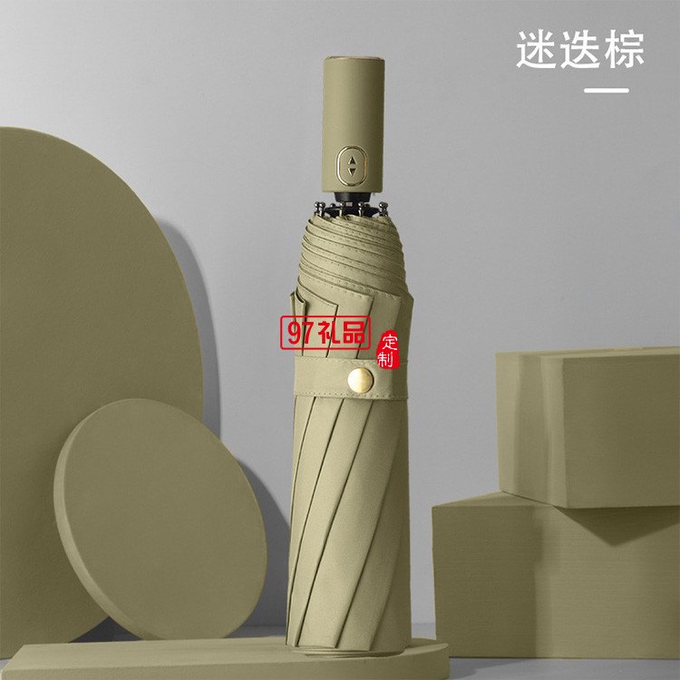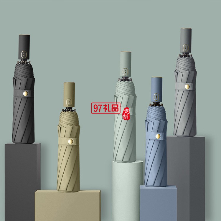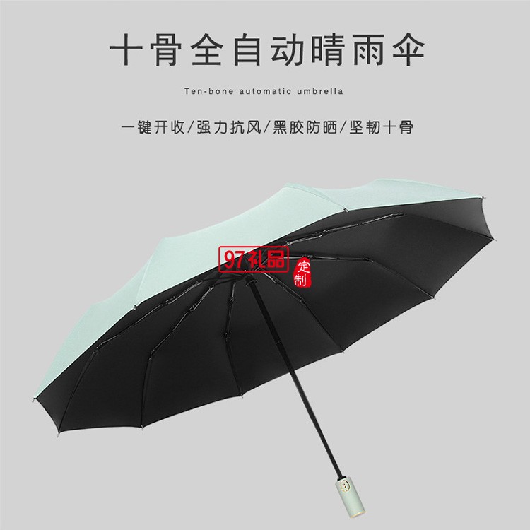 新款跨境黑膠十骨折疊遮陽傘三折防曬太陽傘全自動晴雨傘
