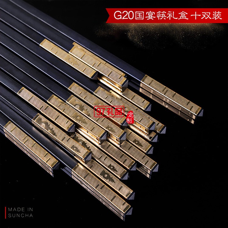 雙槍(Suncha)禾木天香 合金筷子鍍金筷子禮盒筷子套裝10雙裝