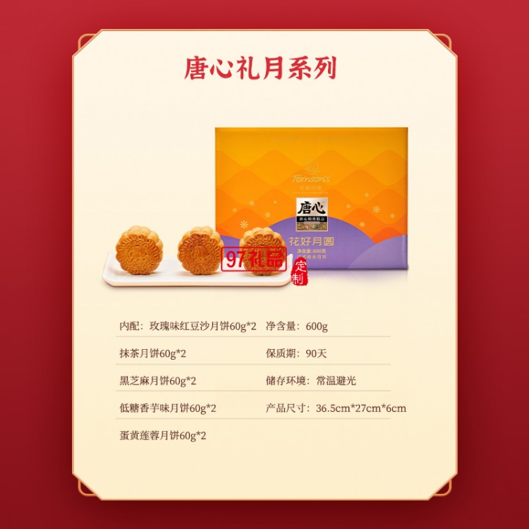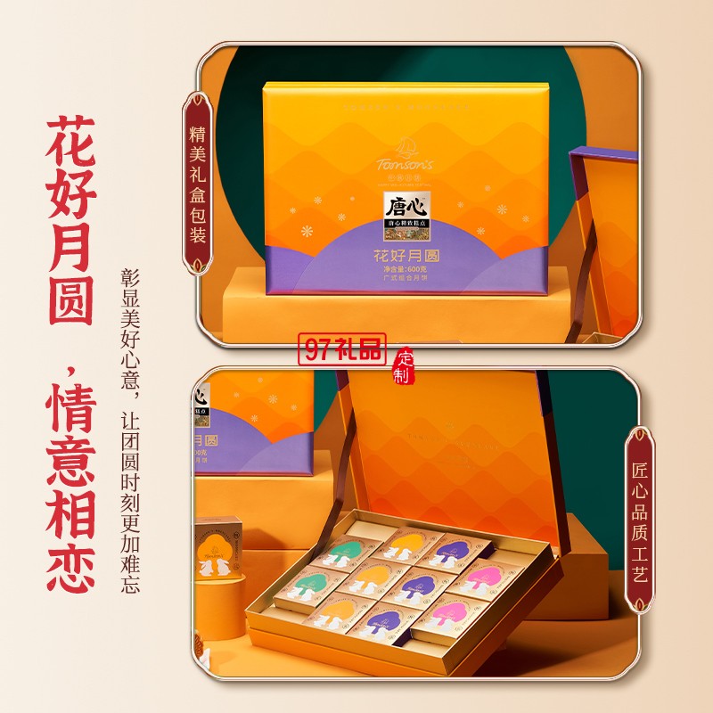 唐心花好月圓月餅禮盒600g蛋黃蓮蓉月餅中秋送禮送長(zhǎng)輩廣式月餅