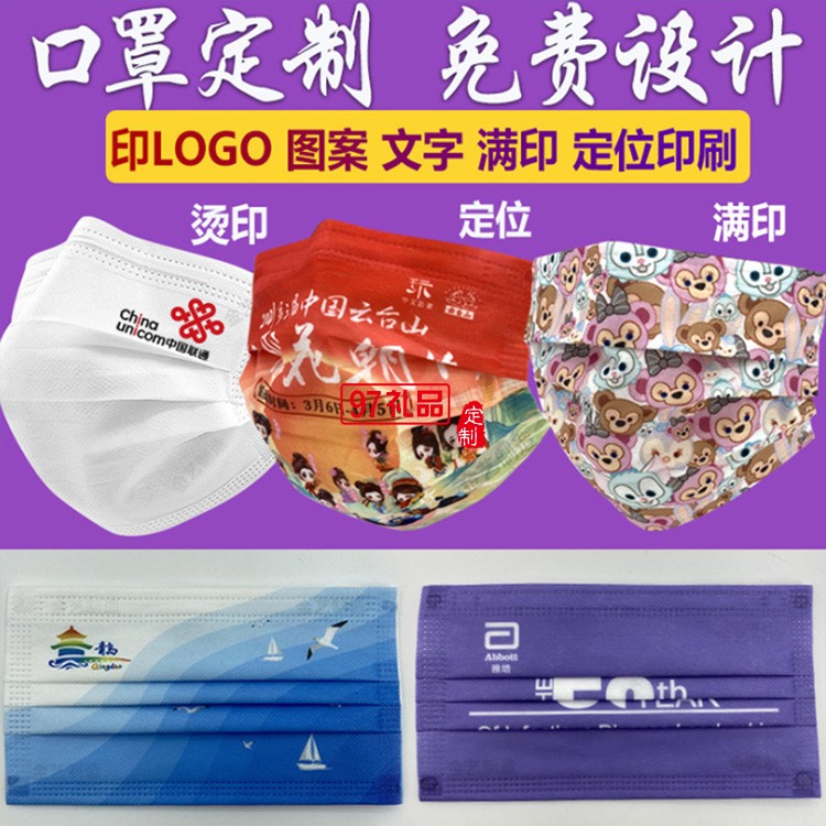 廣告口罩定制logo印字印圖案一次性三層企業(yè)宣傳定位印花口罩定制