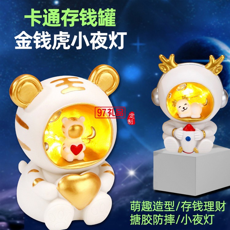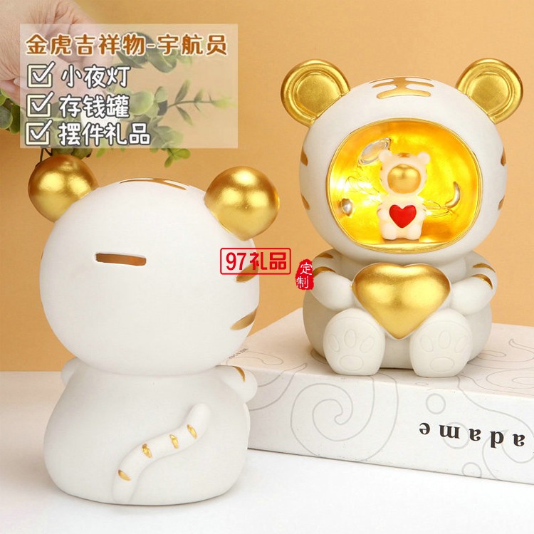 虎年吉祥物老虎小夜燈宇航員存錢罐 臥室裝飾擺件輕奢發(fā)光禮品