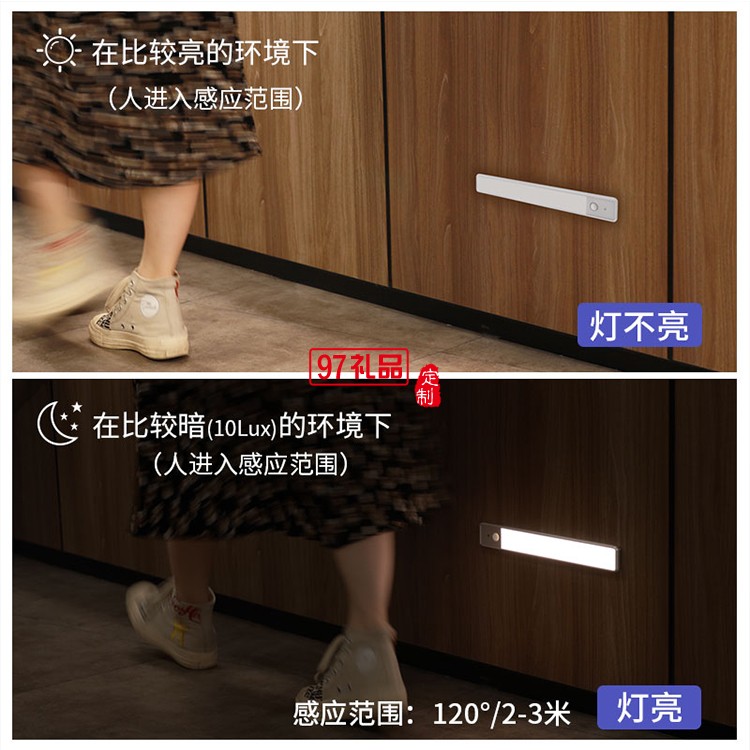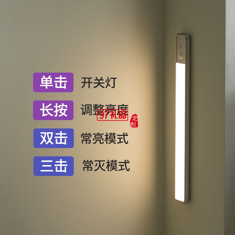無線充電人體感應(yīng)小夜燈免布線家用夜間過道LED燈條定制公司廣告禮品