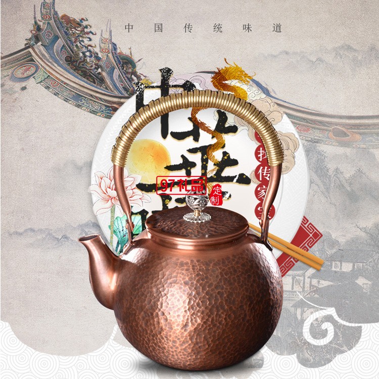 紫銅壺手打捶紋錘紋仿古家用套裝金屬燒水茶壺