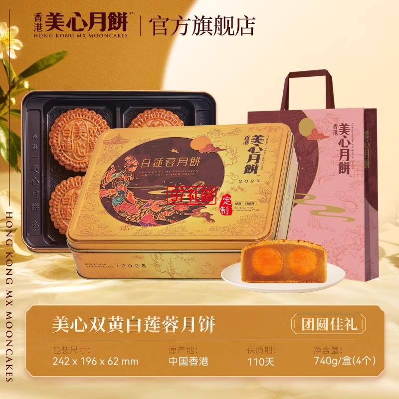 香港美心雙黃白蓮蓉中秋月餅咸蛋黃老式糕點傳統(tǒng)商務(wù)團購正品禮盒