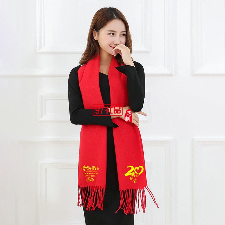 同學(xué)聚會(huì)圍巾刺繡定制logo年會(huì)禮品披肩保暖仿羊絨圍脖印字刺繡