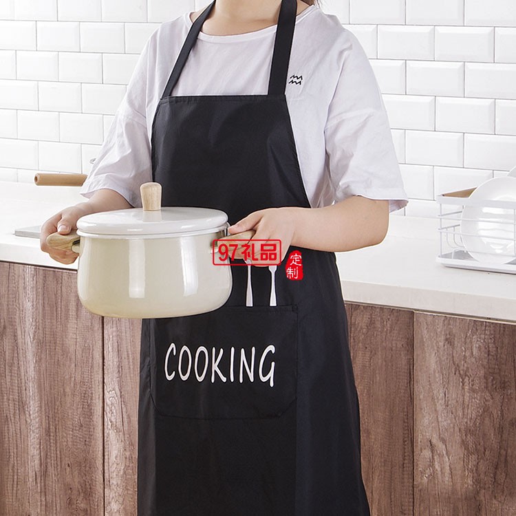 廚房圍裙女士圍兜家用夏季做飯防水防油大人圍腰罩衣定制活動小禮品定制