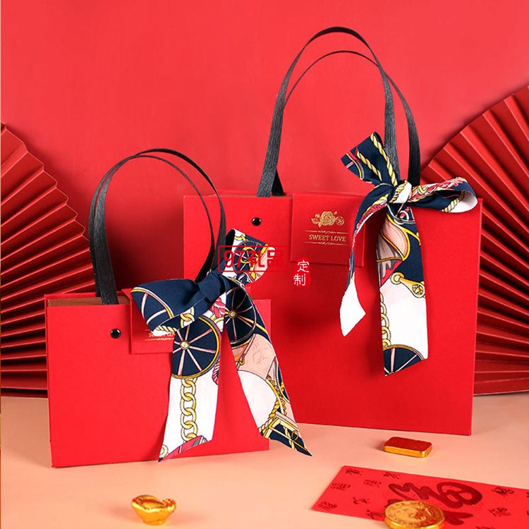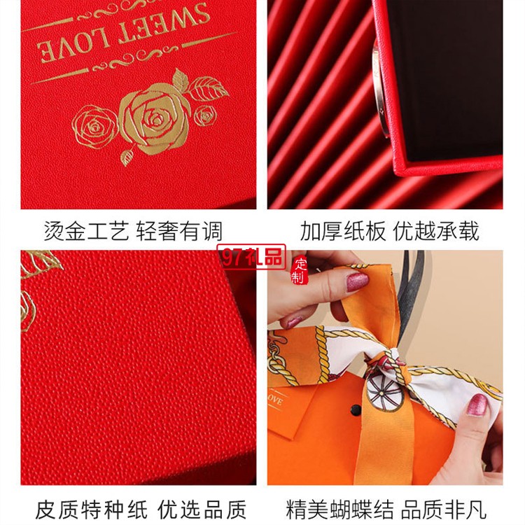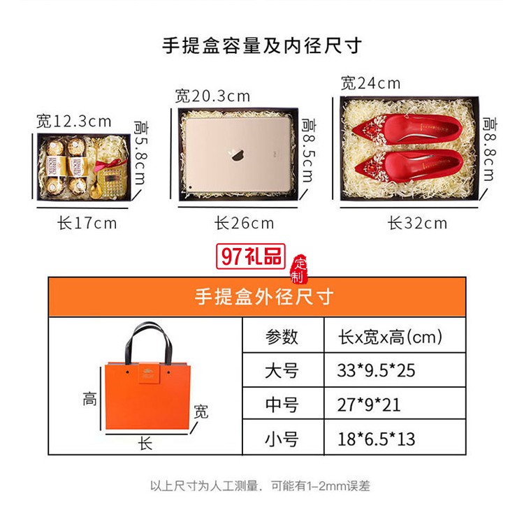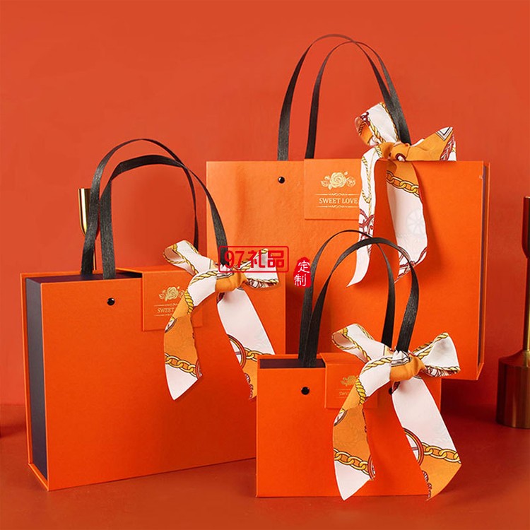 手提禮品盒橙色大號(hào)包裝盒子可以定制logo