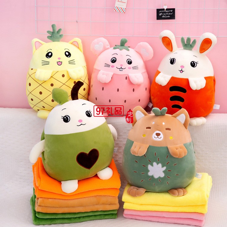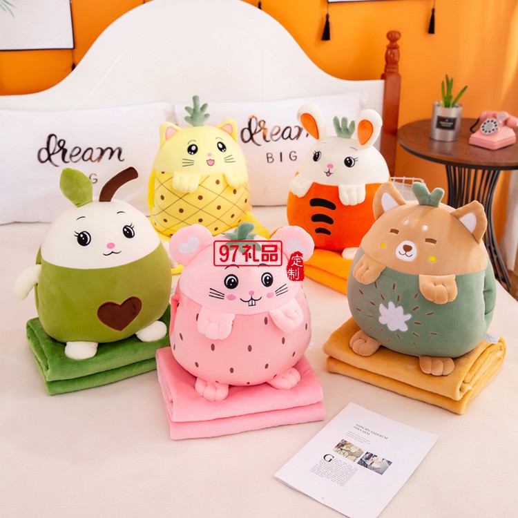 新款水果三合一抱枕被子沙發(fā)靠墊空調(diào)被兒童午睡毯子