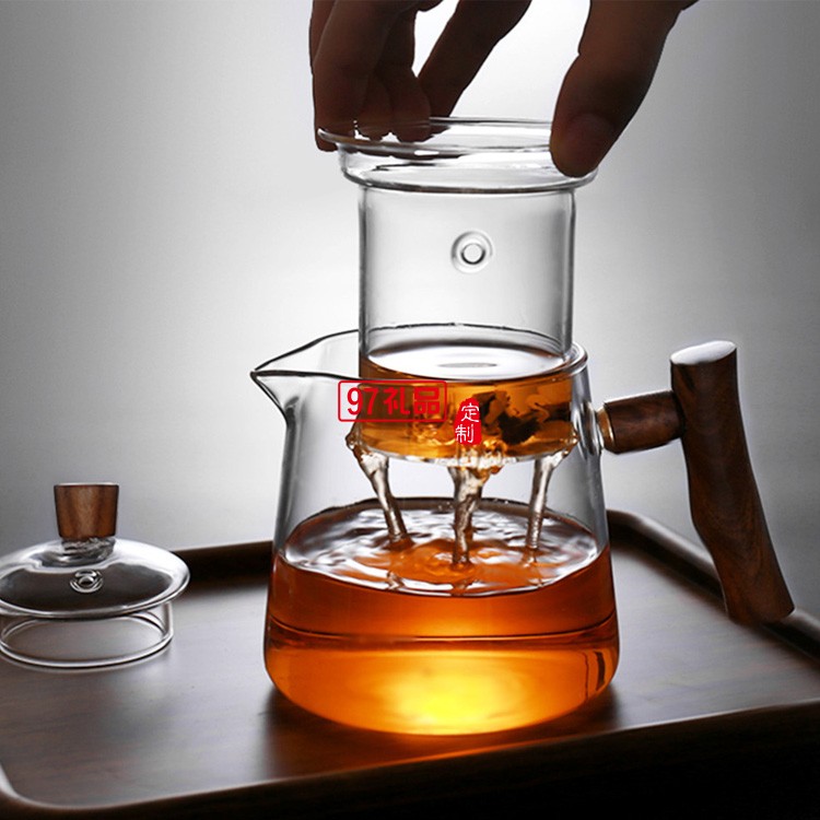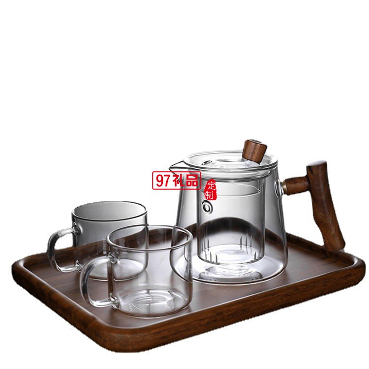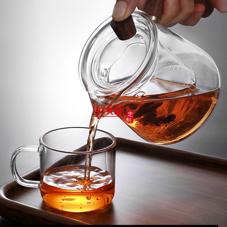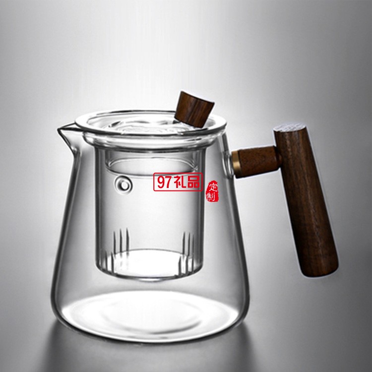 側(cè)木把大容量玻璃泡茶壺茶水分離壺家用煮茶器耐高溫茶具套裝
