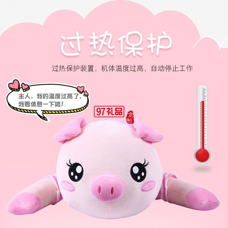 小豬頸椎按摩器頸部腰部多功能電動按摩抱枕定制公司廣告禮品