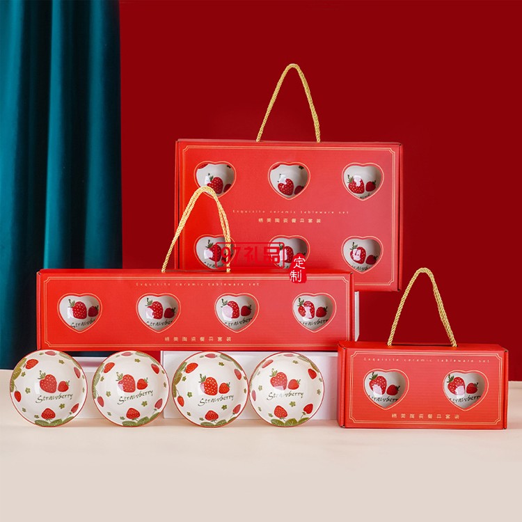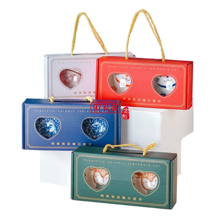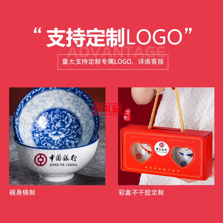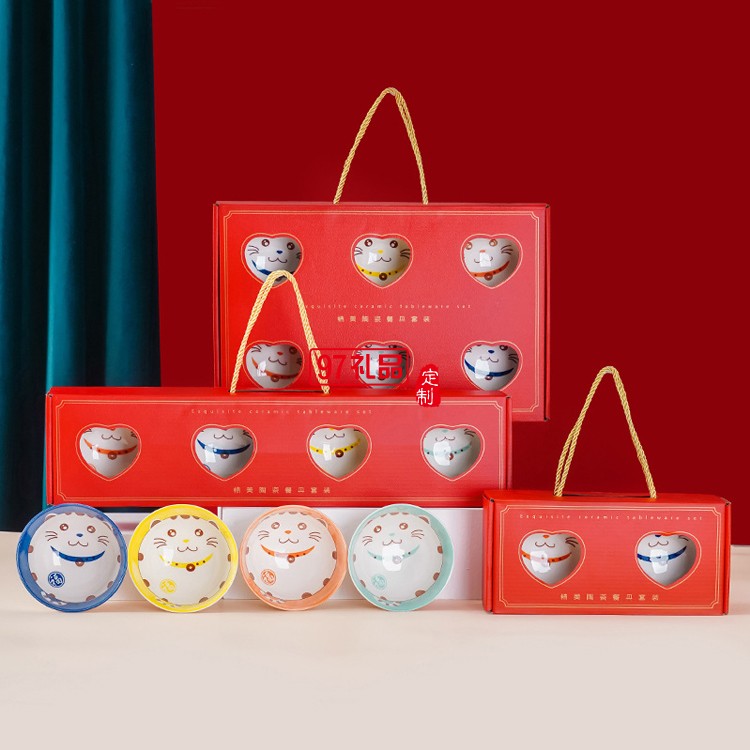 冰裂紋禮品碗套裝日式陶瓷碗餐具活動開業(yè)小禮物