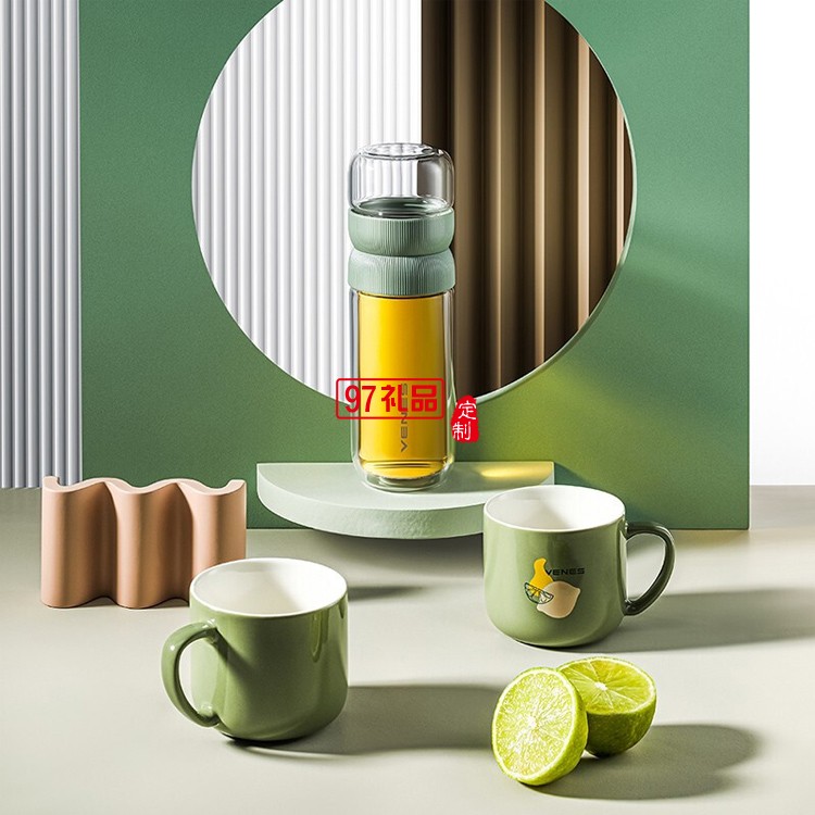 玻璃杯+兩個(gè)陶瓷杯套裝