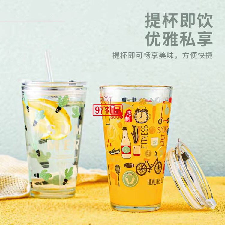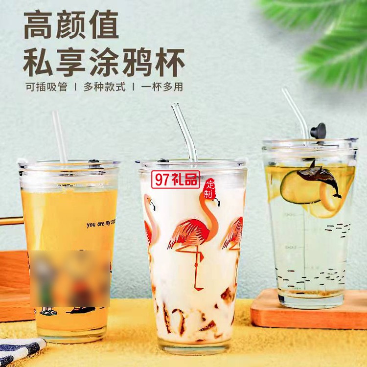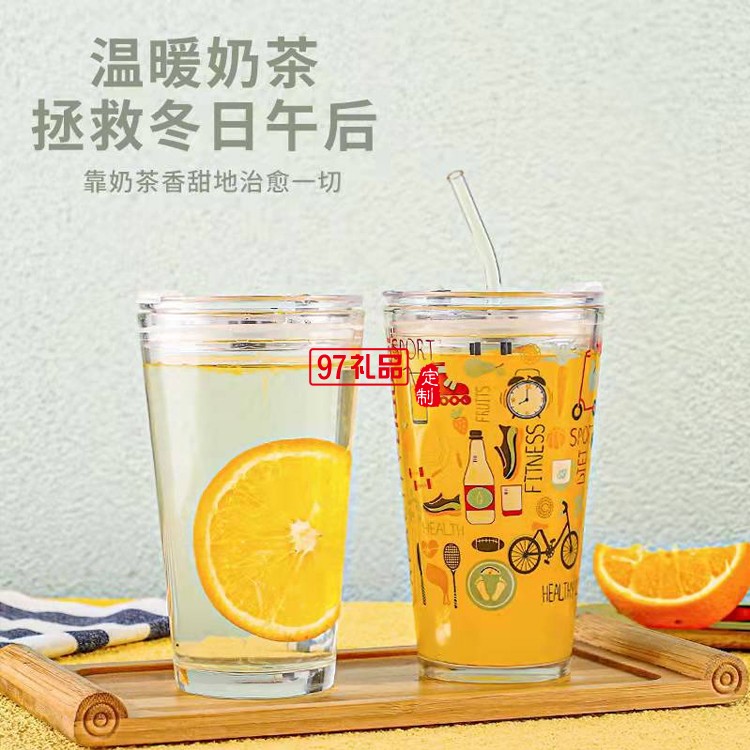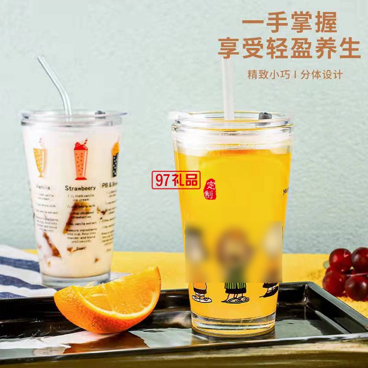 可愛牛奶杯卡通吸管玻璃杯