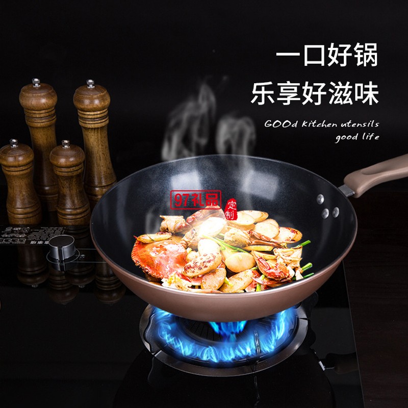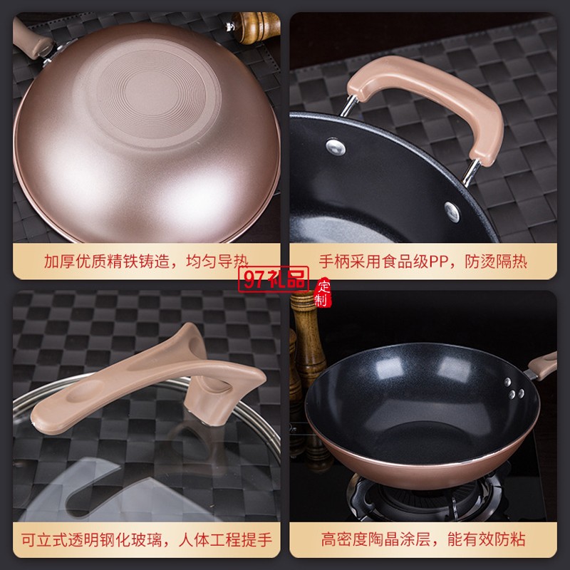 定制不粘鍋三件套鍋具組合不沾炒鍋加厚平底鍋送客戶禮品員工福利