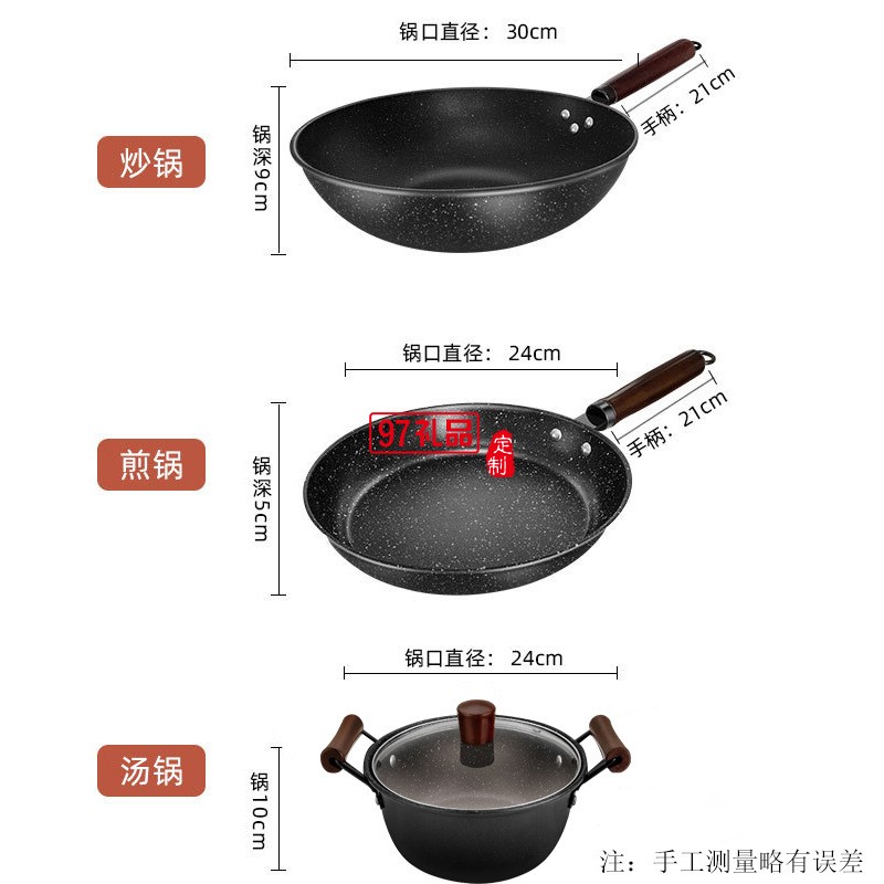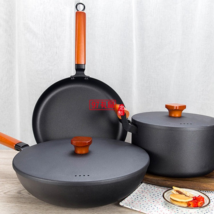 不粘鍋具套裝全套 廚房平底鍋炒鍋組合燃?xì)馔ㄓ?家用三件套無(wú)煙鍋