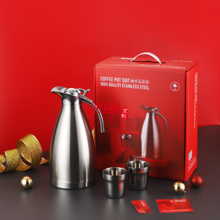 不銹鋼壺保溫壺三件套 歐式真空咖啡壺水壺婚慶喜慶實用禮盒套裝