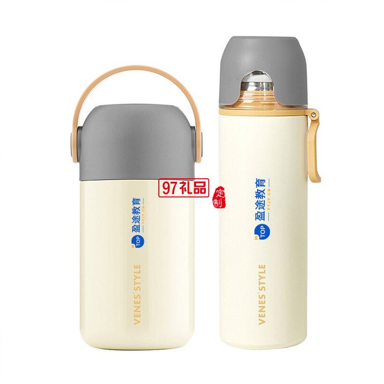 304不銹鋼保溫杯燜燒罐悅享生活套裝兩件套 奶灰色