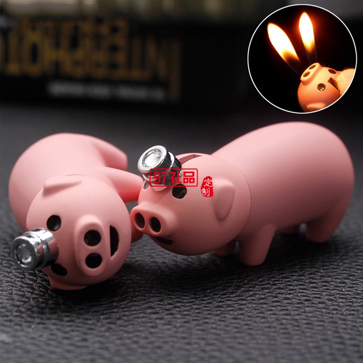 創(chuàng)意小豬雙火充氣打火機(jī)定制logo定制公司廣告促銷禮品
